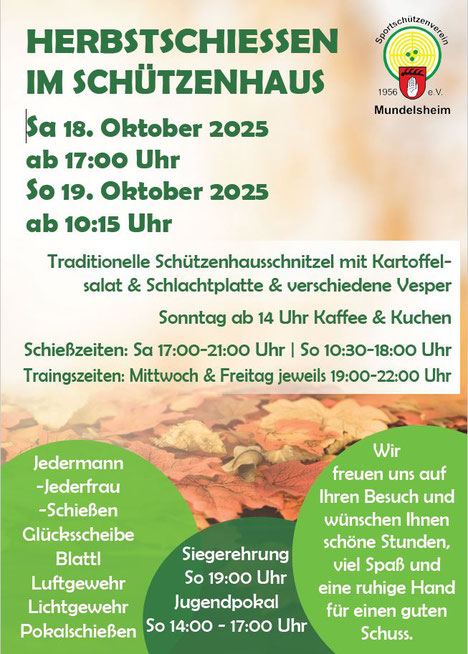 Herzliche Einladung zu unserem Herbstschießen ins Schützenhaus Mundelsheim.
