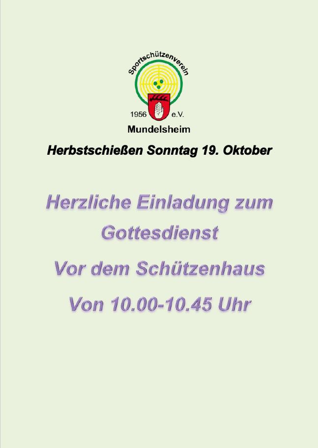 Am 18.und, 19. Oktober findet wieder unser traditionelles Herbstschießen im Schützenhaus in Mundelsheim statt.