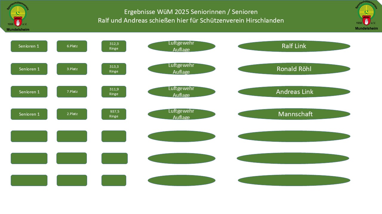 Beim Luftgewehr Herren 1 erreichte Stefan Obesser mit 388,9 Ringen den 10.Platz, Andreas Link erreichte bei den Herren 3 mit 387,8 Ringen den 3. Platz.