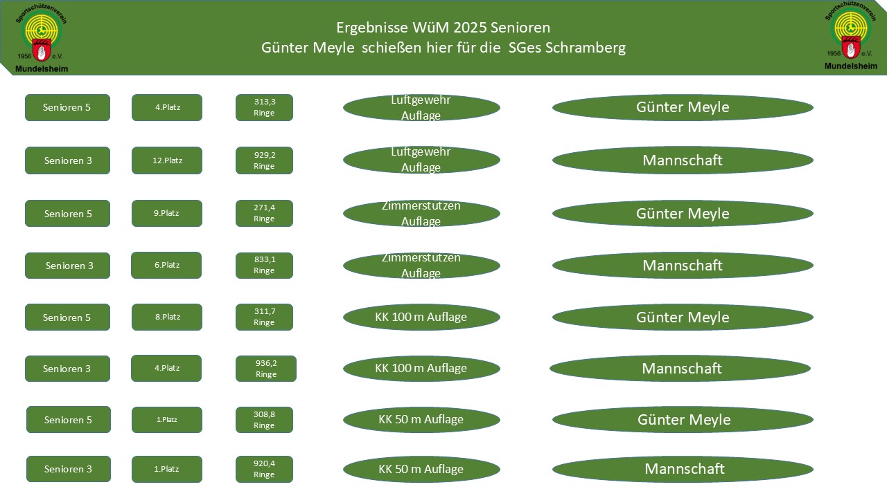Zuletzt noch unser Günter Meyle , der in den Disziplinen Luftgewehr Auflage, Zimmerstutzen Auflage und KK 50 m Auflage und KK 100 m Auflage für die SGes Schramberg schießt.